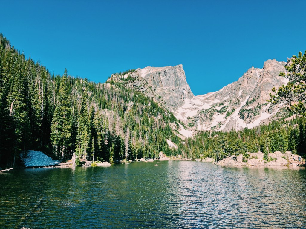We decided to get a head start on hiking Dream Lake and Emerald Lake instead; this ended up being a good idea. On our way out the trail in was a lot more packed with people.