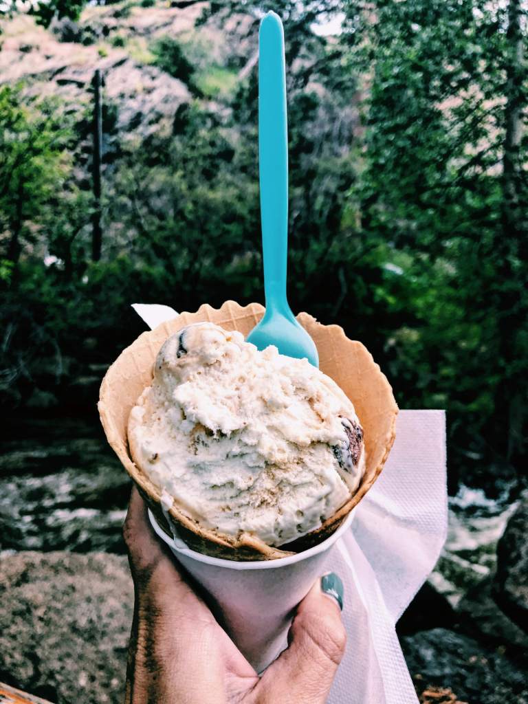 Head towards downtown Estes Park and the Riverwalk for a walk around the shops and restaurants of what I call the epitome of a mountain town. Grab some saltwater taffy, browse for mountain gear, and shop through artisan goods before finding a restaurant. I recommend Wapiti, which has a wide selection of burgers, sandwiches, seafood, and other American food for a reasonable price. Make sure to save room for dessert though—you won’t be able to walk by the Danish Cone Factory and not buy an ice cream cone after smelling the fresh, creamy scent wafting onto the streets from inside the shop.