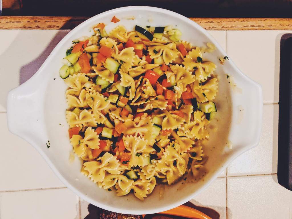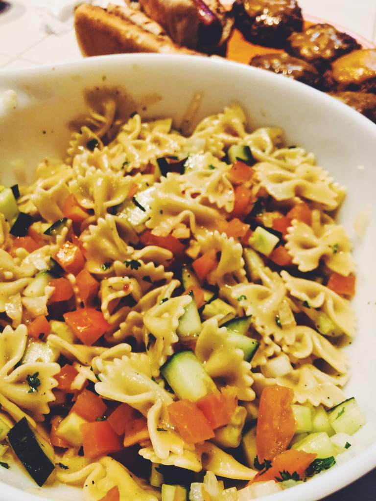 So the whole point of this recipe is a pasta salad you can throw together, hopefully with stuff you already have.