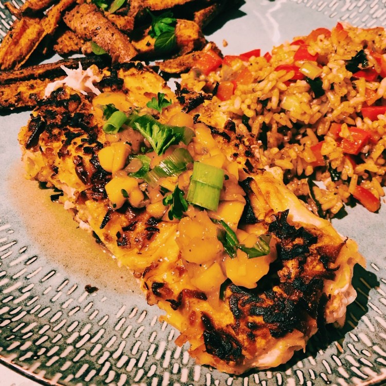 COCONUT & PECAN CRUSTED MAHI-MAHI WITH MANGO SAUCE