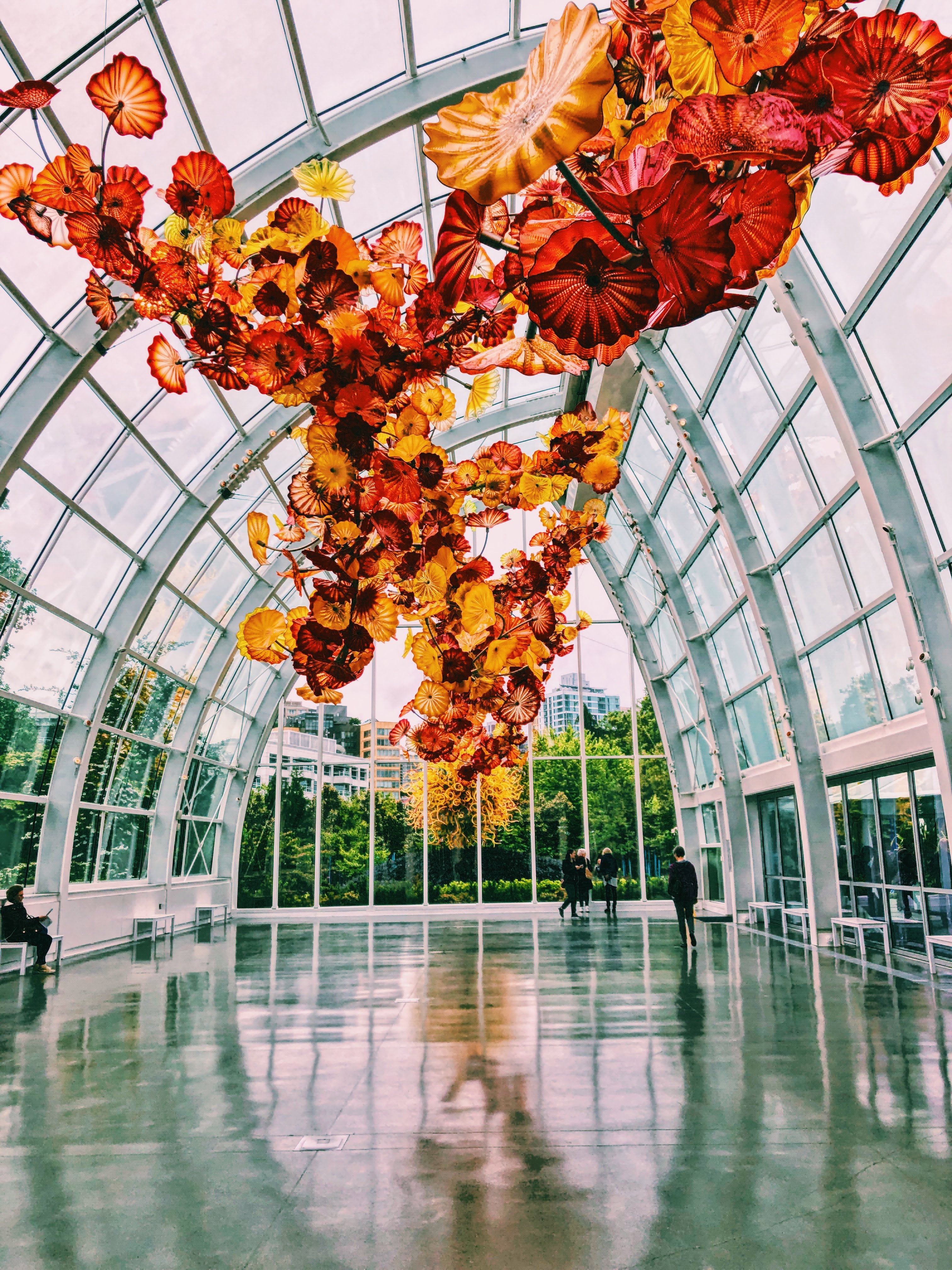 Once you’re ready to move out and about the city, head to the Cherry Coffee House for a breakfast wrap (and maybe another coffee). It’s about a 10 minute walk from the Edgewater. Once you feel energized, walk another 10 minutes to the Chihuly Glass Museum. This museum contains some of the most incredible glass sculptures and creations you’ll lay your eyes on. Make sure you hit the garden, too, which combines nature with glass art.