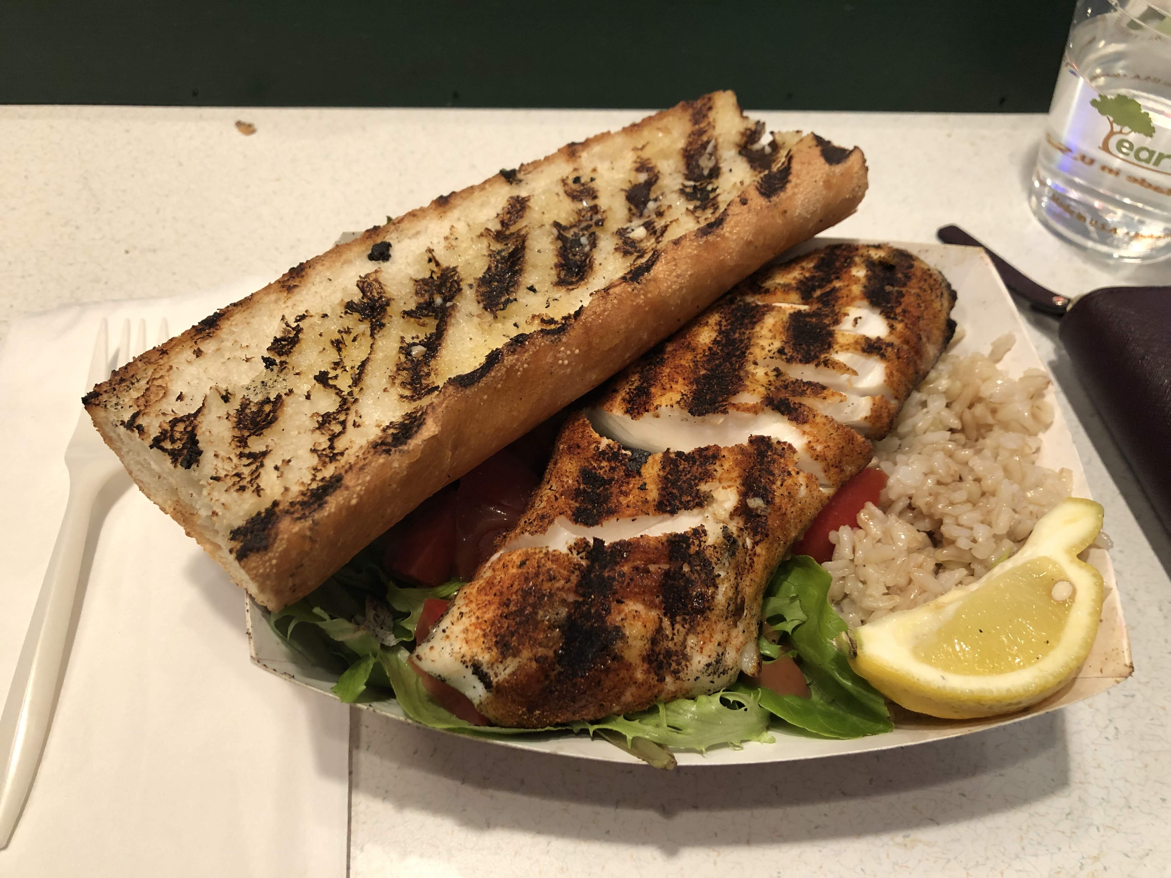 At this point you’re probably hungry, even after all the coffee. If you’re in Seattle, you definitely want to splurge on seafood. Head over to Market Grill at Pike’s Place for a halibut fish platter. They serve it with a bit of salad, rice, and bread.